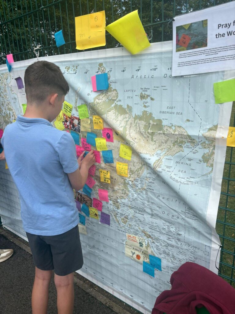 - Pray for the World – think about and discuss current issues around the world and ask God to pray for those he need our love and support