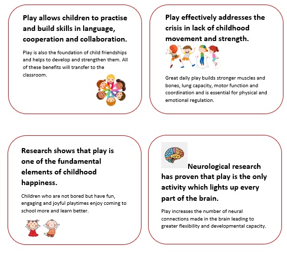 We are pleased to be working towards becoming an OPAL school. OPAL stands for Outdoor Play and Learning and it supports the development of positive play experiences in the school day. Play is not just for fun, there are numerous benefits to a child who partakes in rich and varied play experiences.